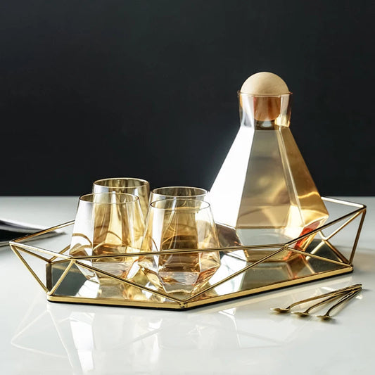 Plateau polygonal en verre et métal – Style moderne
