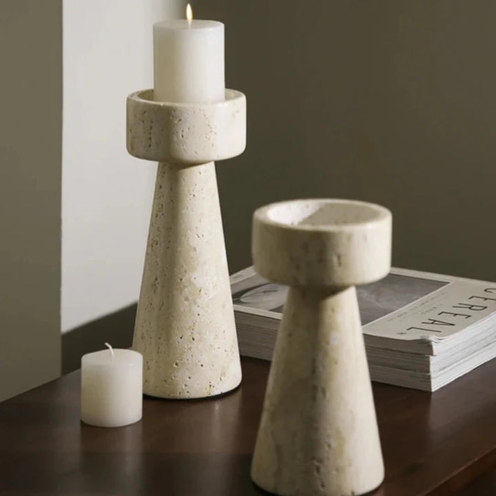 Bougeoir en Travertin Naturel – Élégance Rustique