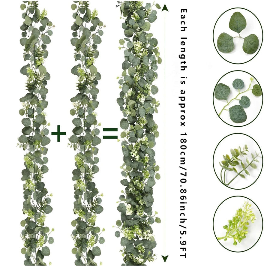 - 1x Set de 2 pièces de guirlandes en eucalyptus artificiel